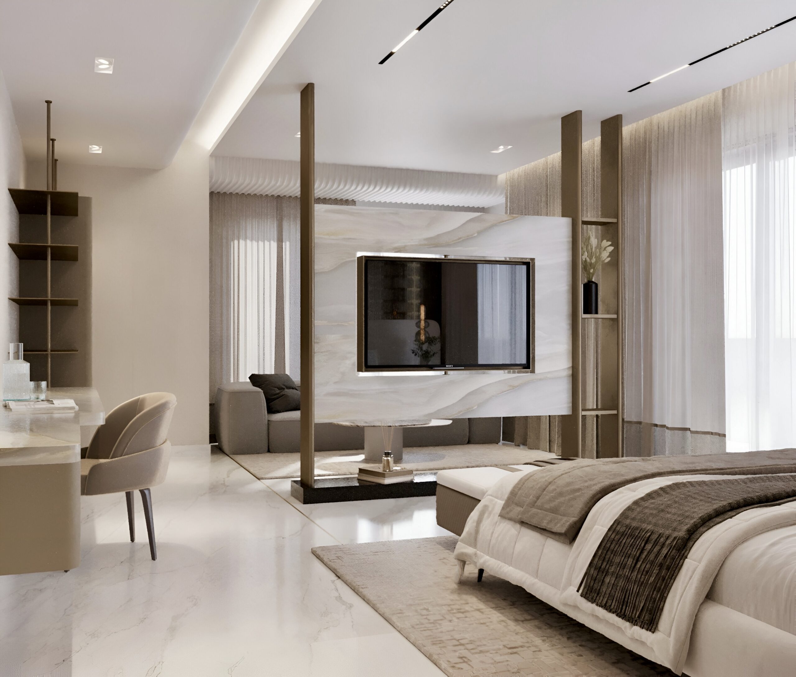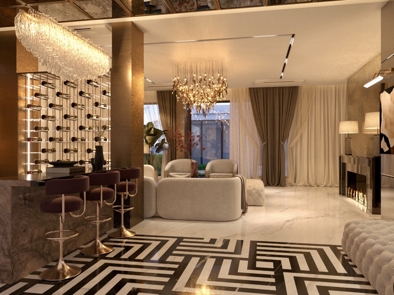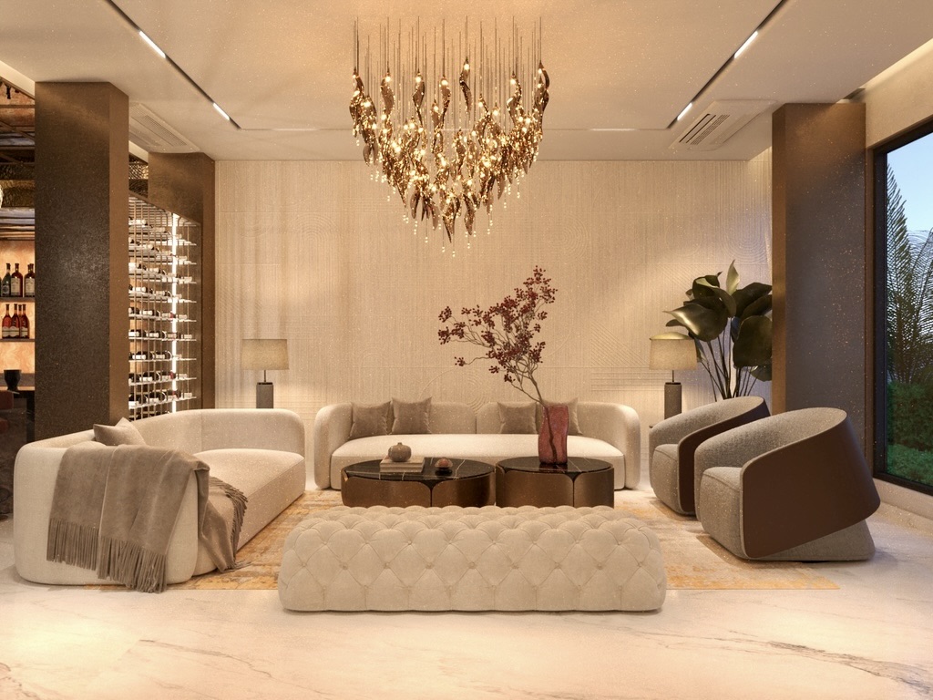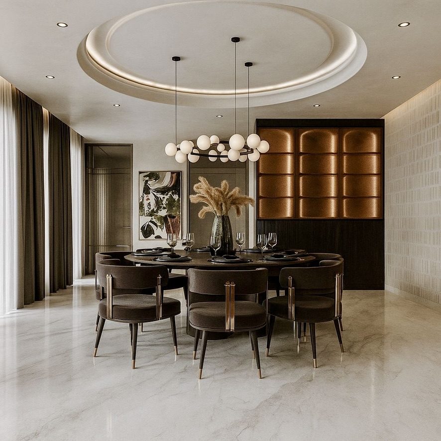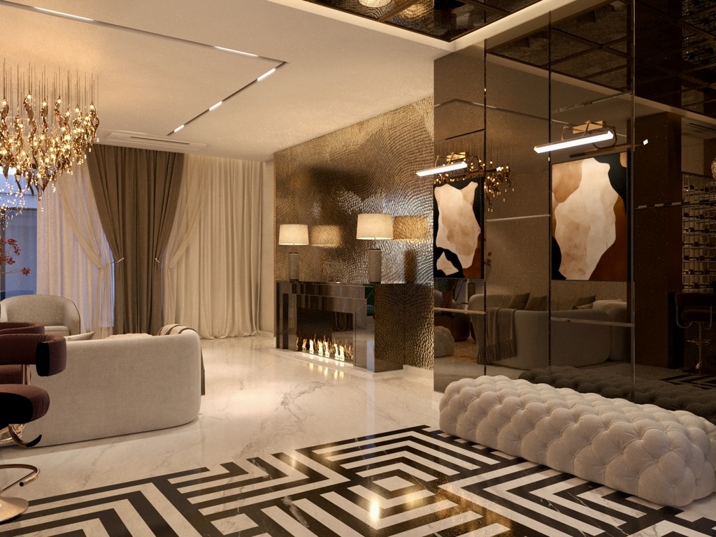 The project was a challenge in itself as it had to reflect the opulence the client needed in the existing structure. We played with flooring patterns, ceiling & furniture in major way to transform the space.